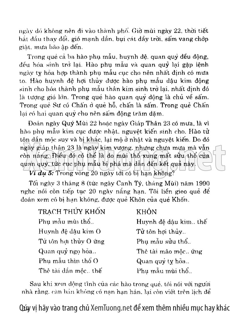 + Sách chủ yếu giới thiệu các ví dụ đoán quẻ tích lũy được trong thực tiễn của tác giả. Trong sách có phương pháp đoán theo tượng quẻ, đoán theo tượng hào và phương pháp đoán kết hợp. Ngoài ra có một số quẻ được chọn lựa từ tinh hoa của các học viên, một số nữa là chọn những quẻ hay, điển hình trong sách cổ. Trong lời giải quẻ luôn thể hiện nhất quán các phương pháp đoán quẻ cơ bản là: “một hào động”, “tượng quẻ”, “dịch lí”, “số lí”, “ngũ hành sinh khắc” và “ngoại ứng”.