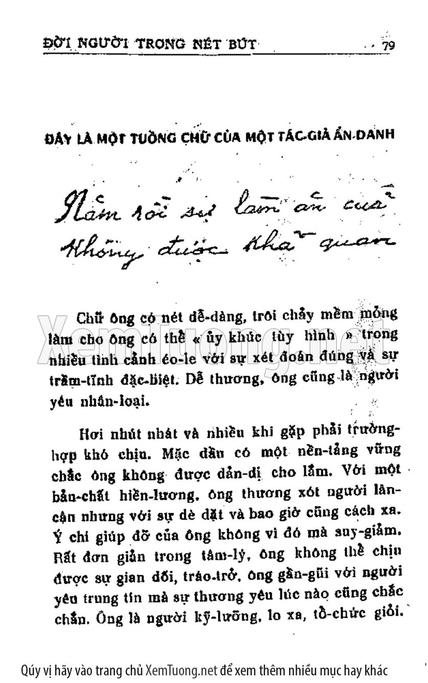 Cuốn sách "Đời người trong nét bút" của tác giả Huỳnh Minh, thuộc hàng hiếm xưa nay, bởi đây gần như là cuốn đầu tiên chỉ cho ta biết cách đoán tánh tình người và vận mạng của họ thông qua lối xem chứ kỹ tên và nét bút.
