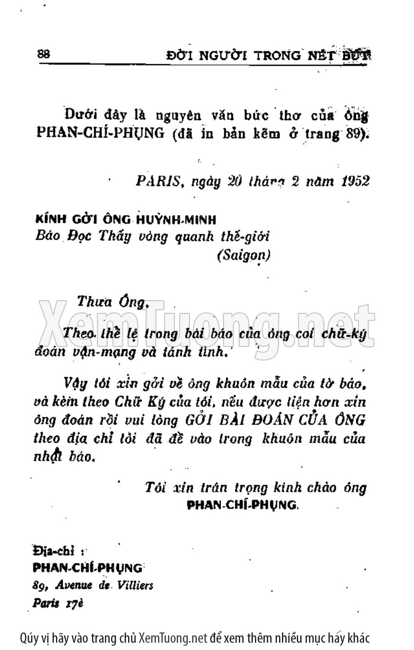 Cuốn sách "Đời người trong nét bút" của tác giả Huỳnh Minh, thuộc hàng hiếm xưa nay, bởi đây gần như là cuốn đầu tiên chỉ cho ta biết cách đoán tánh tình người và vận mạng của họ thông qua lối xem chứ kỹ tên và nét bút.
