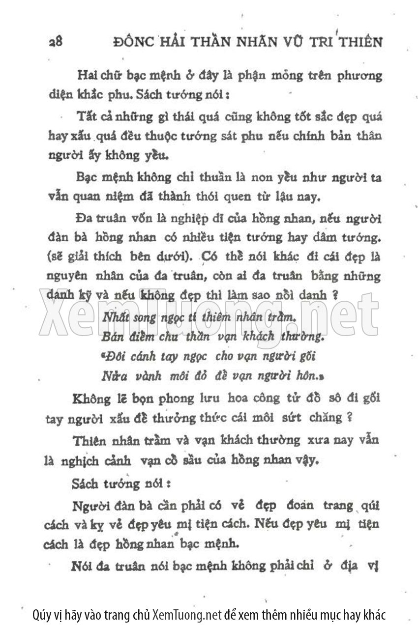 Cuộc sống từ ngàn xưa vẫn có hai nghi vắn to lớn: Tại sao thê gian ít người đắc chí mà nhiều kẻ bất đắc chí? Bao giờ thì người ta có thể khám phá hết ra bí mật của đàn bà? Hãy trả lời các câu hỏi trên qua sách 'Tìm hiểu đàn bà con gái qua tướng thuật'