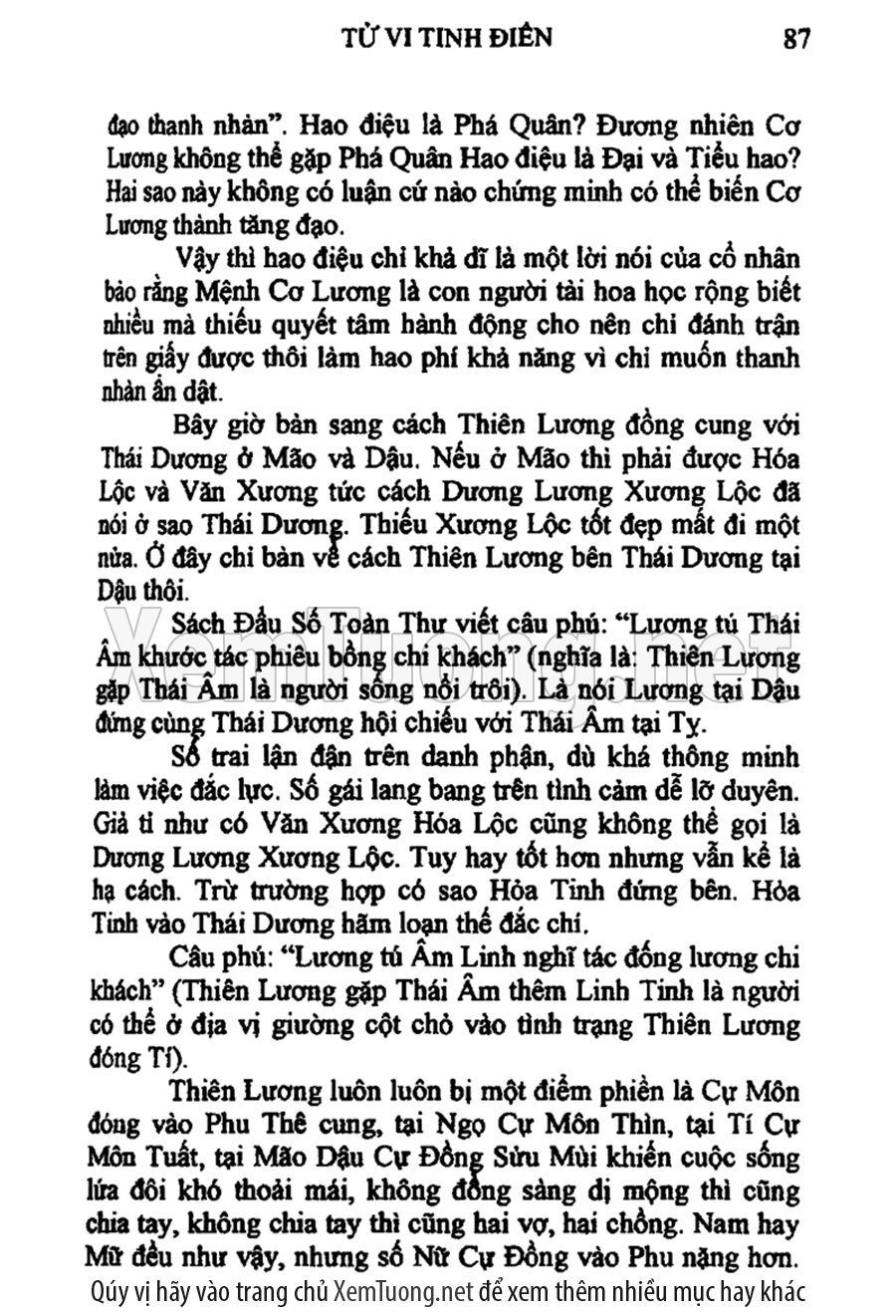 Tử vi tinh điển diễn dịch cho người đọc và chỉ rõ rằng cổ nghĩa ghi ở các bài phú của cổ nhân, ẩn chứa nhiều ngụ ý sâu xa về các cung cách ngũ hành, số phận, tính cách của mỗi con người. Ngoài ra, sách còn có những tìm tòi phát hiện về những sao có ghi trong sách vở bên Trung Quốc như Âm sát, Quan sát, Tuế dịch, Phan án, Tức thần, Thiên sát, Chi bối, Nguyệt sát, Vọng thần...