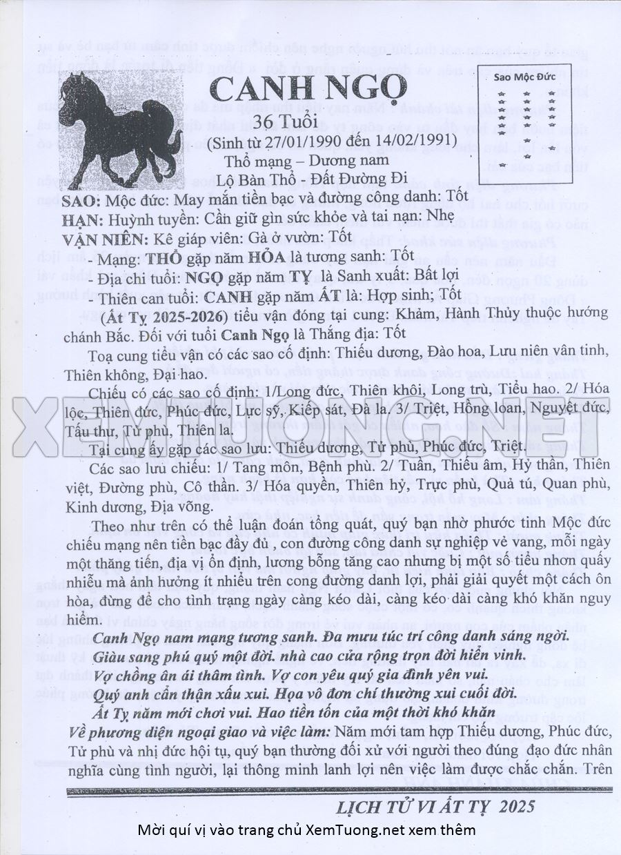 Tử Vi Năm Ất Tỵ 2025 mạng nam CANH NGỌ