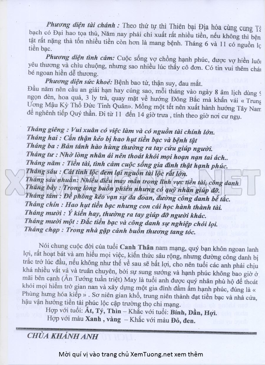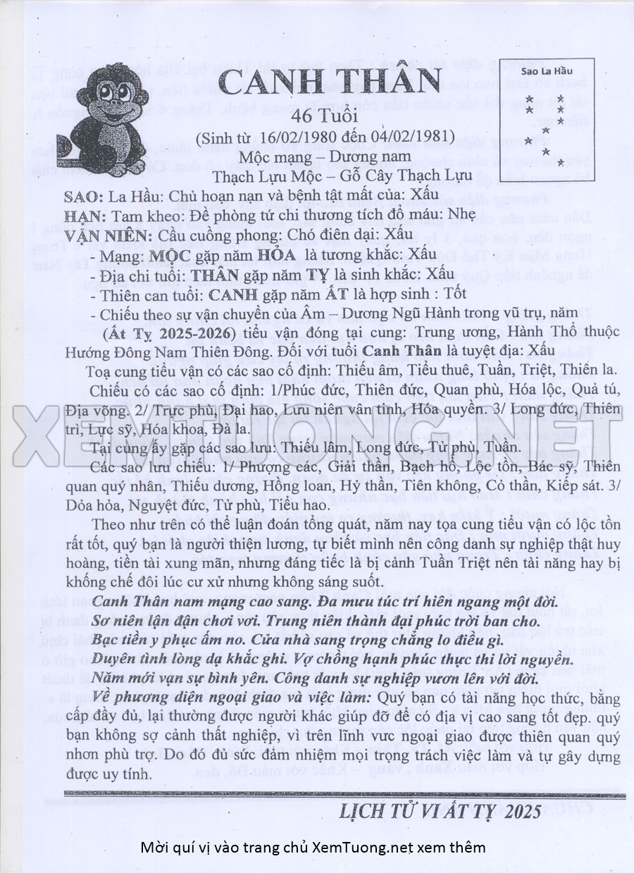Tử Vi Năm Ất Tỵ 2025 mạng nam CANH THÂN