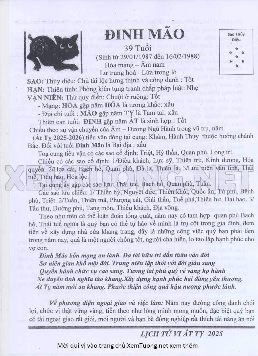 Tử Vi Năm Ất Tỵ 2025 mạng nam ĐINH MÃO