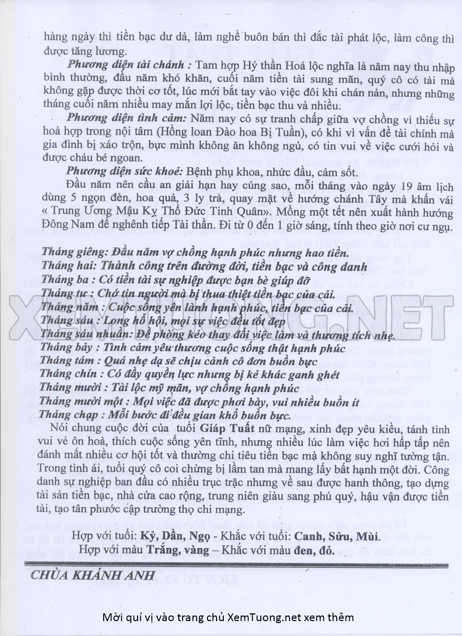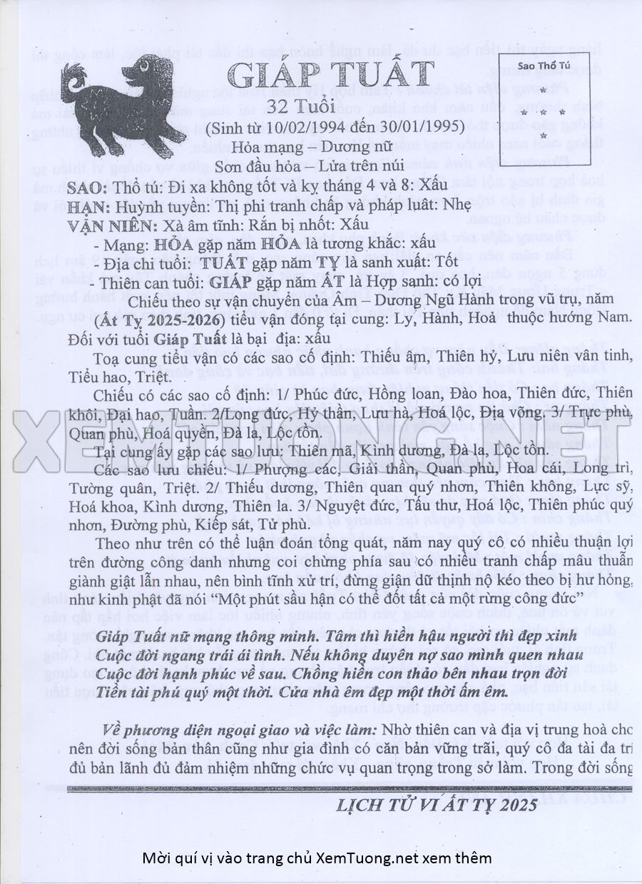 Tử Vi Năm Ất Tỵ 2025 mạng nữ GIÁP TUẤT