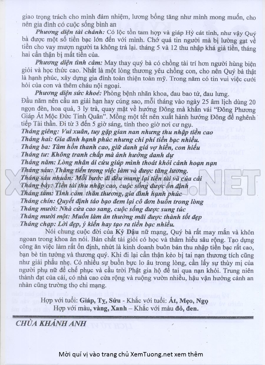 Tử Vi Năm Ất Tỵ 2025 mạng nữ KỶ DẬU