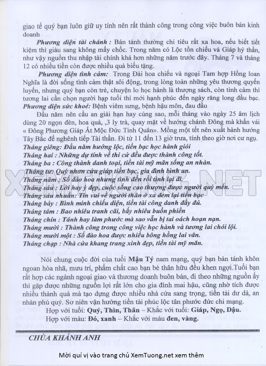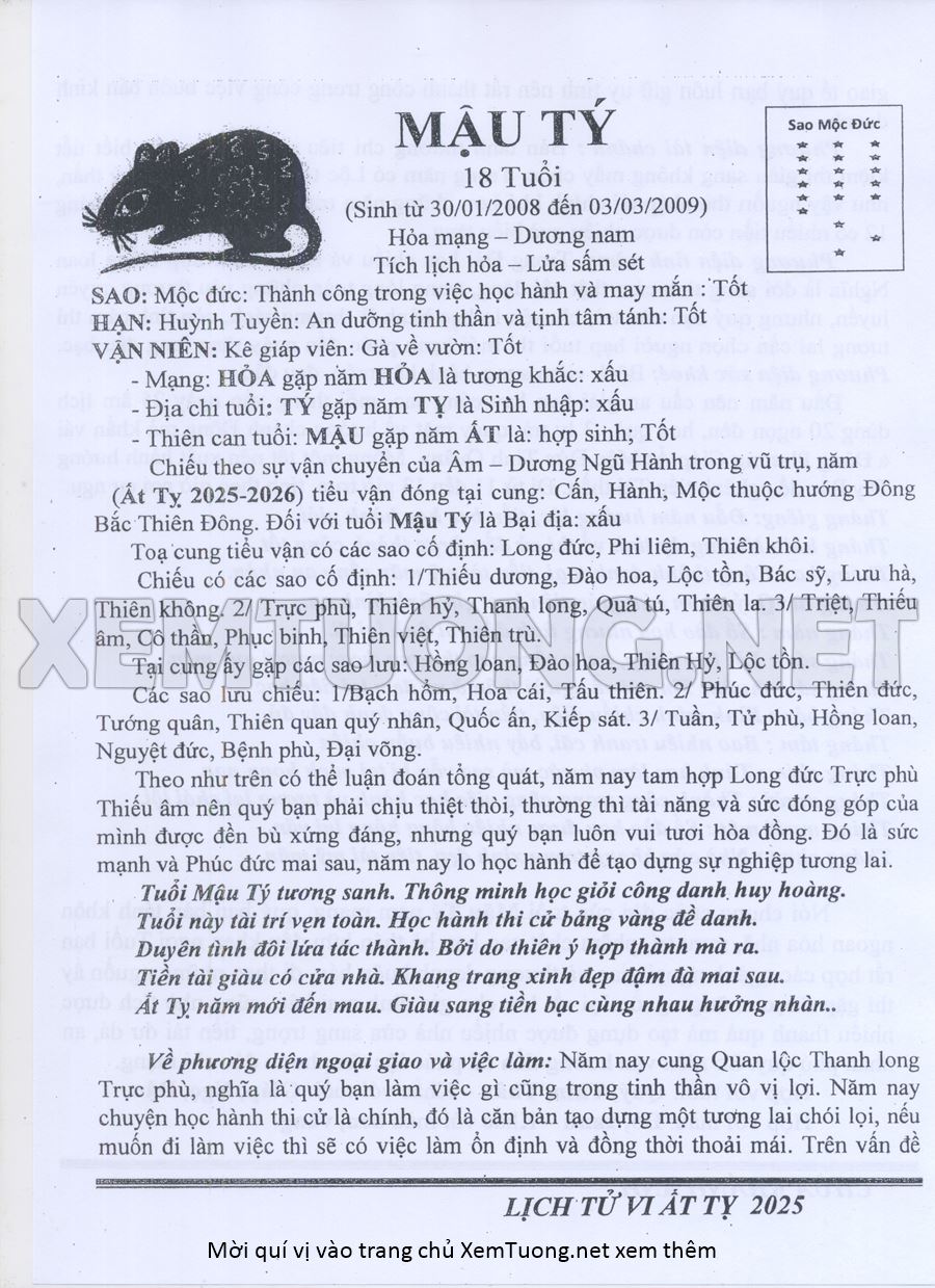 Tử Vi Năm Ất Tỵ 2025 mạng nam MẬU TÝ