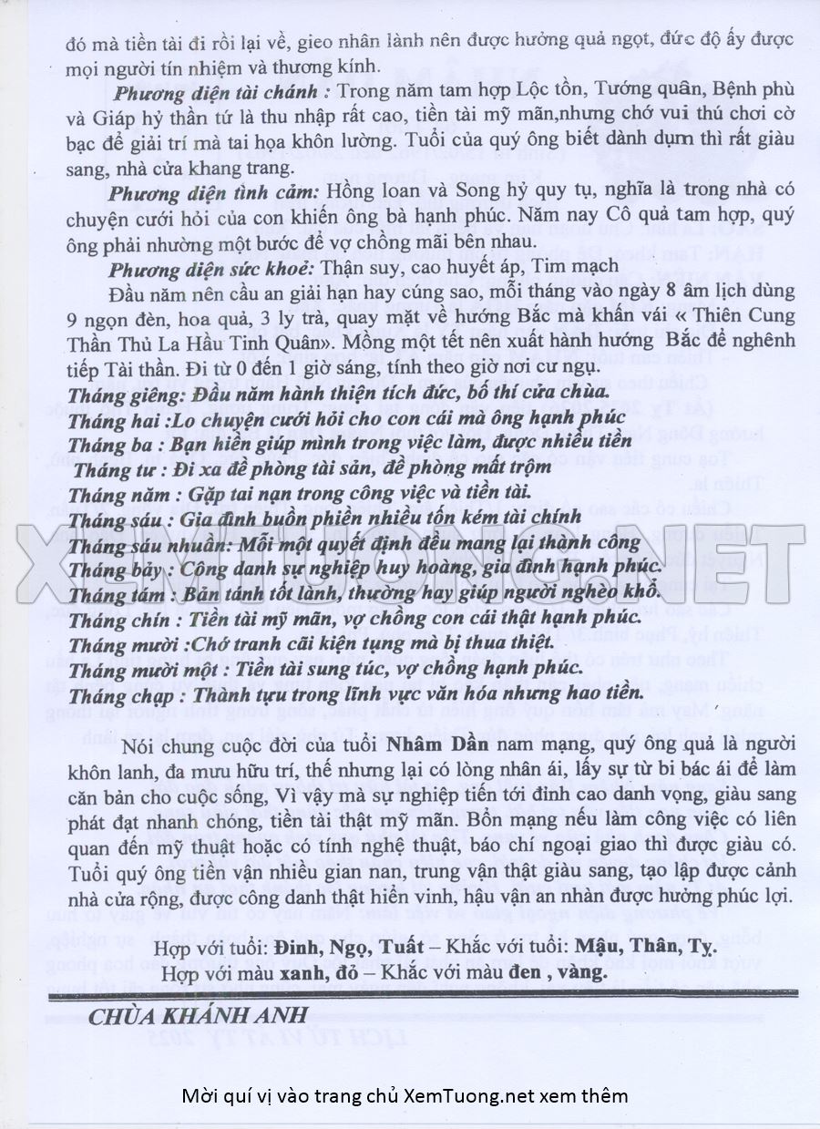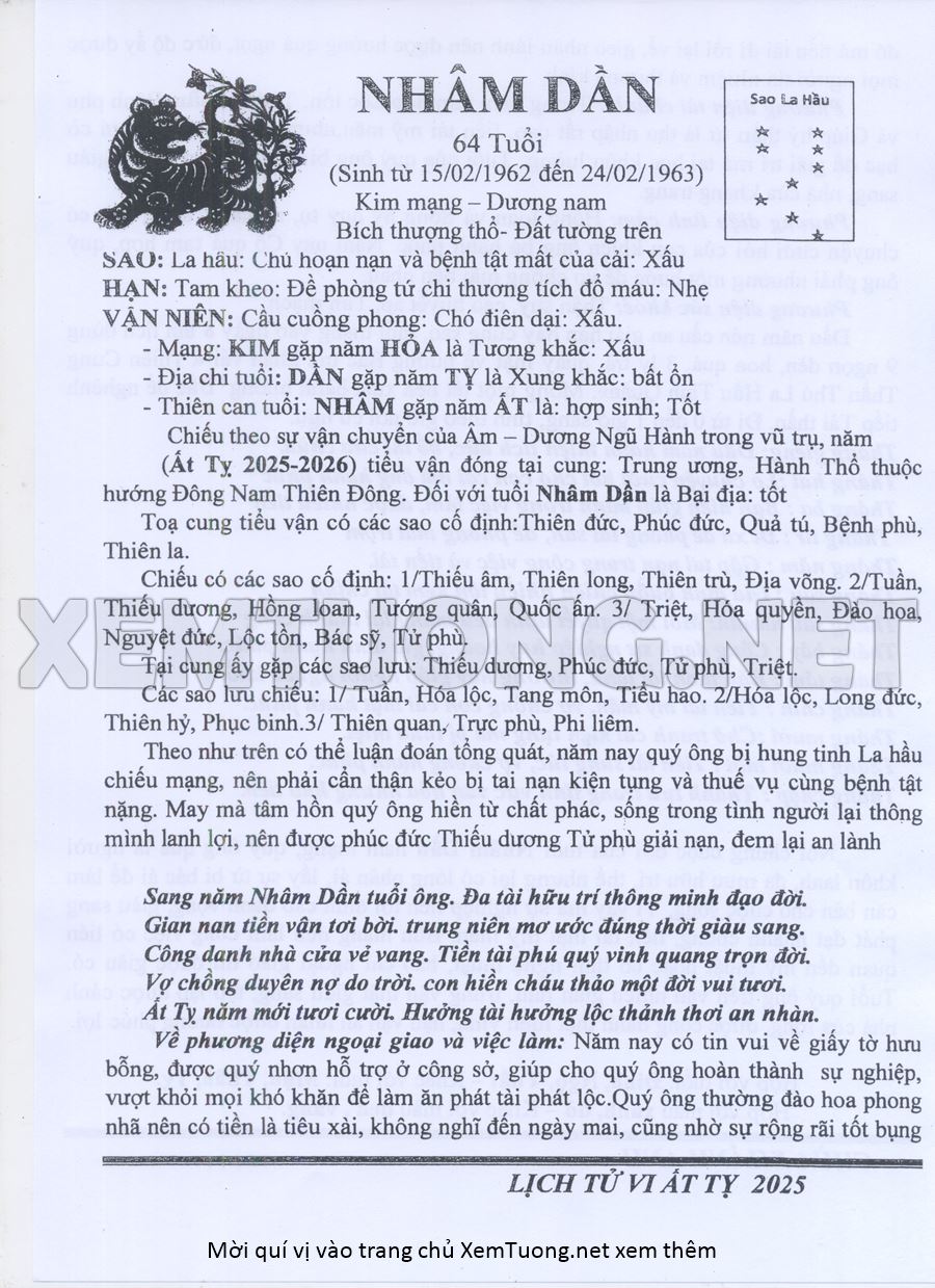 Tử Vi Năm Ất Tỵ 2025 mạng nam NHÂM DẦN
