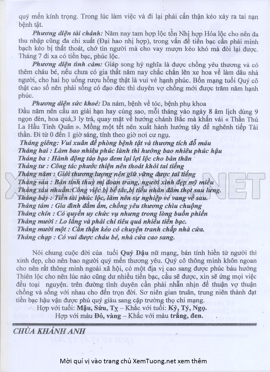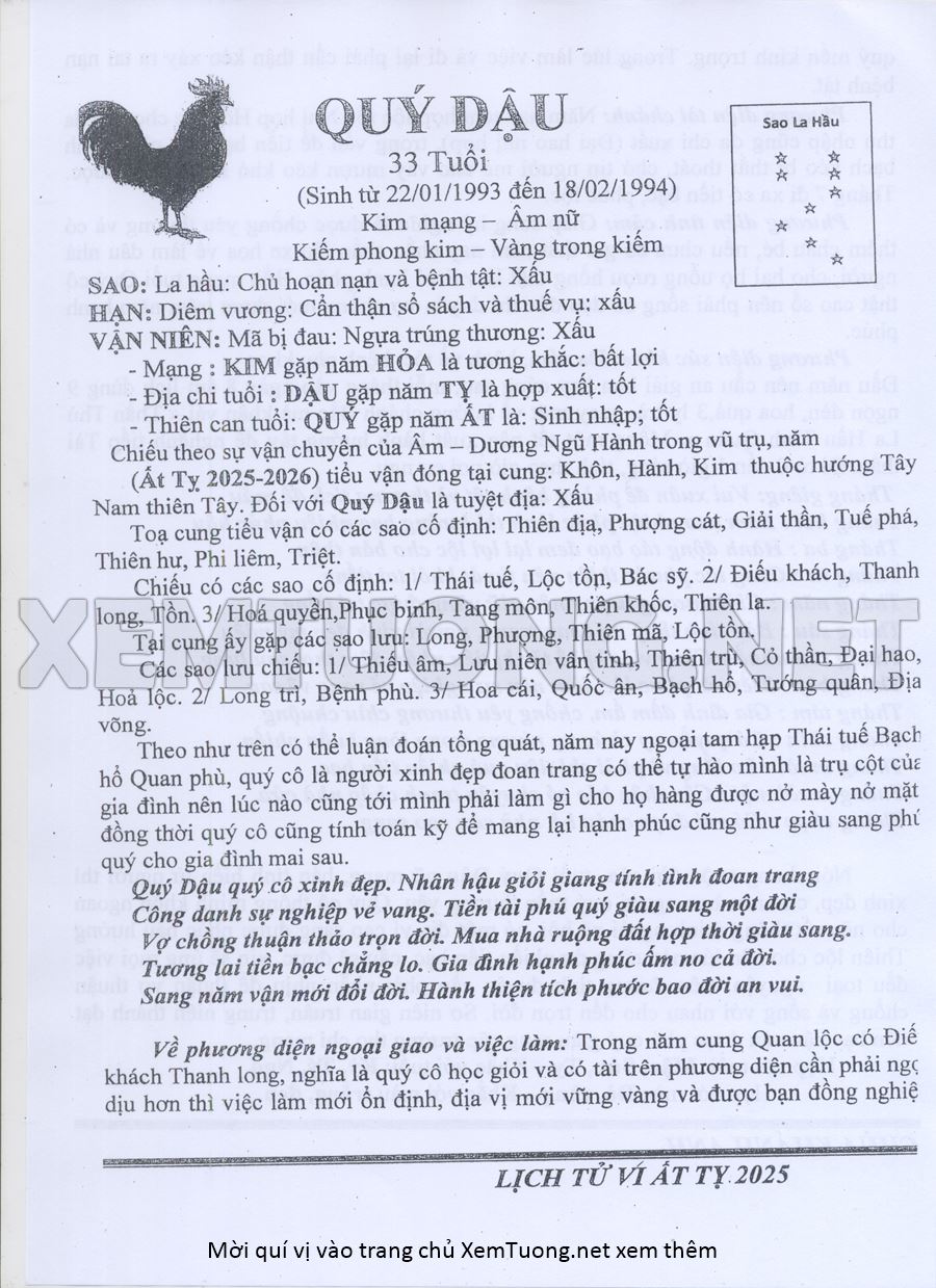 Tử Vi Năm Ất Tỵ 2025 mạng nữ QUÝ DẬU