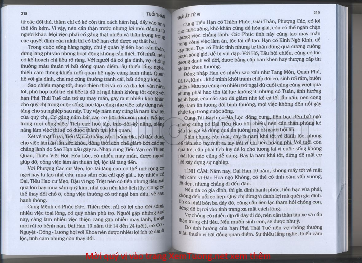 (Lưu ý: Thái Ất Tử Vi được chúng tôi scan từ sách, do đó mỗi tuổi sẽ có nhiều trang, quý vị xem xong hãy nhấn vào trang tiếp theo để xem hết phần tuổi muốn xem. Nếu quý vị xem bằng điện thoại thì hãy kéo qua lại để xem phần bị khuất.)