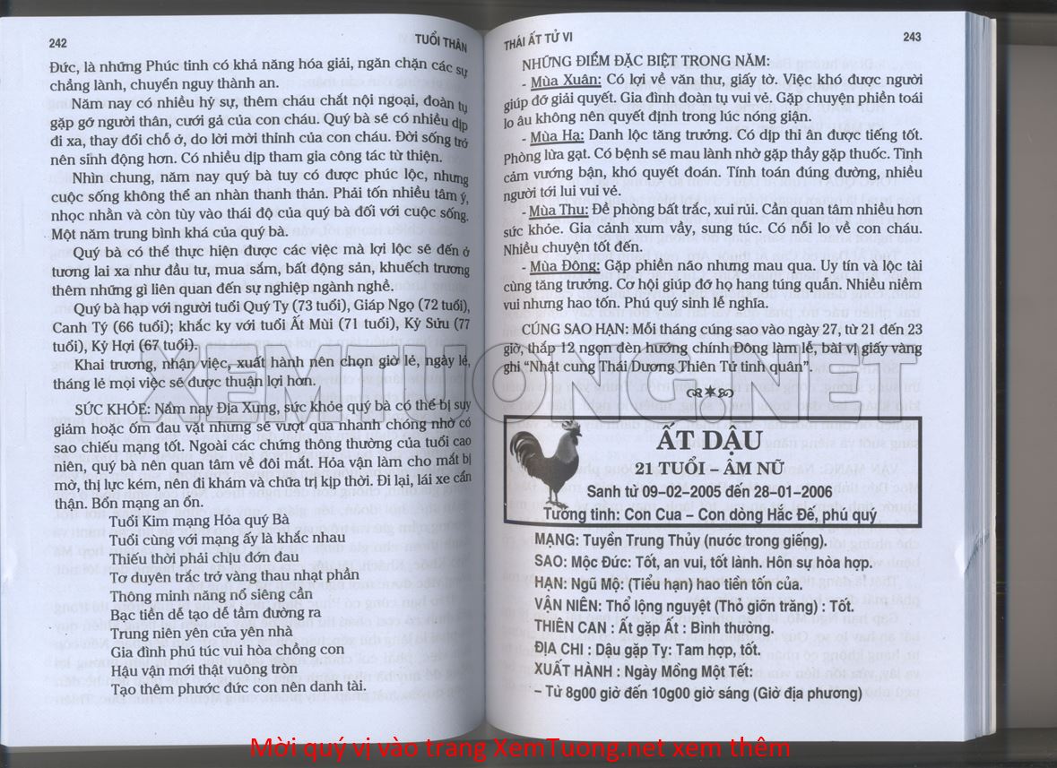 (Lưu ý: Thái Ất Tử Vi được chúng tôi scan từ sách, do đó mỗi tuổi sẽ có nhiều trang, quý vị xem xong hãy nhấn vào trang tiếp theo để xem hết phần tuổi muốn xem. Nếu quý vị xem bằng điện thoại thì hãy kéo qua lại để xem phần bị khuất.)