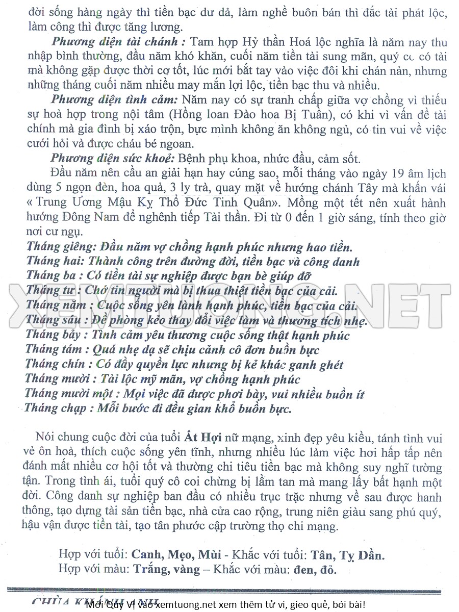 Tử Vi Năm Bính Ngọ 2026 mạng nữ ẤT HỢI