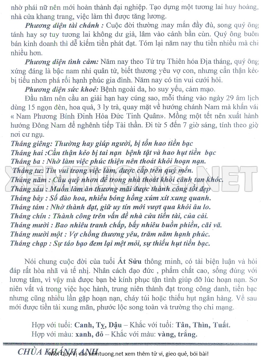 Tử Vi Năm Bính Ngọ 2026 mạng nam ẤT SỬU