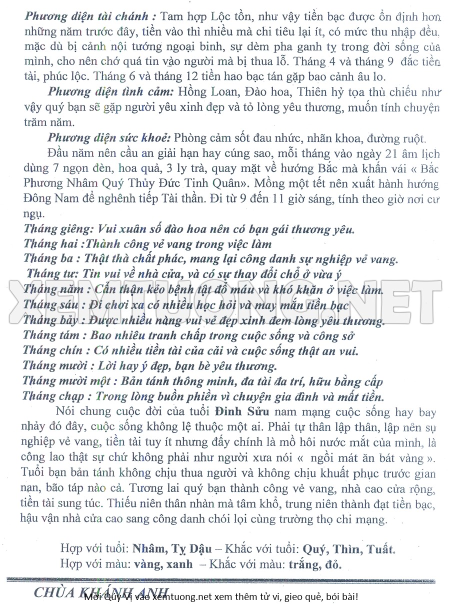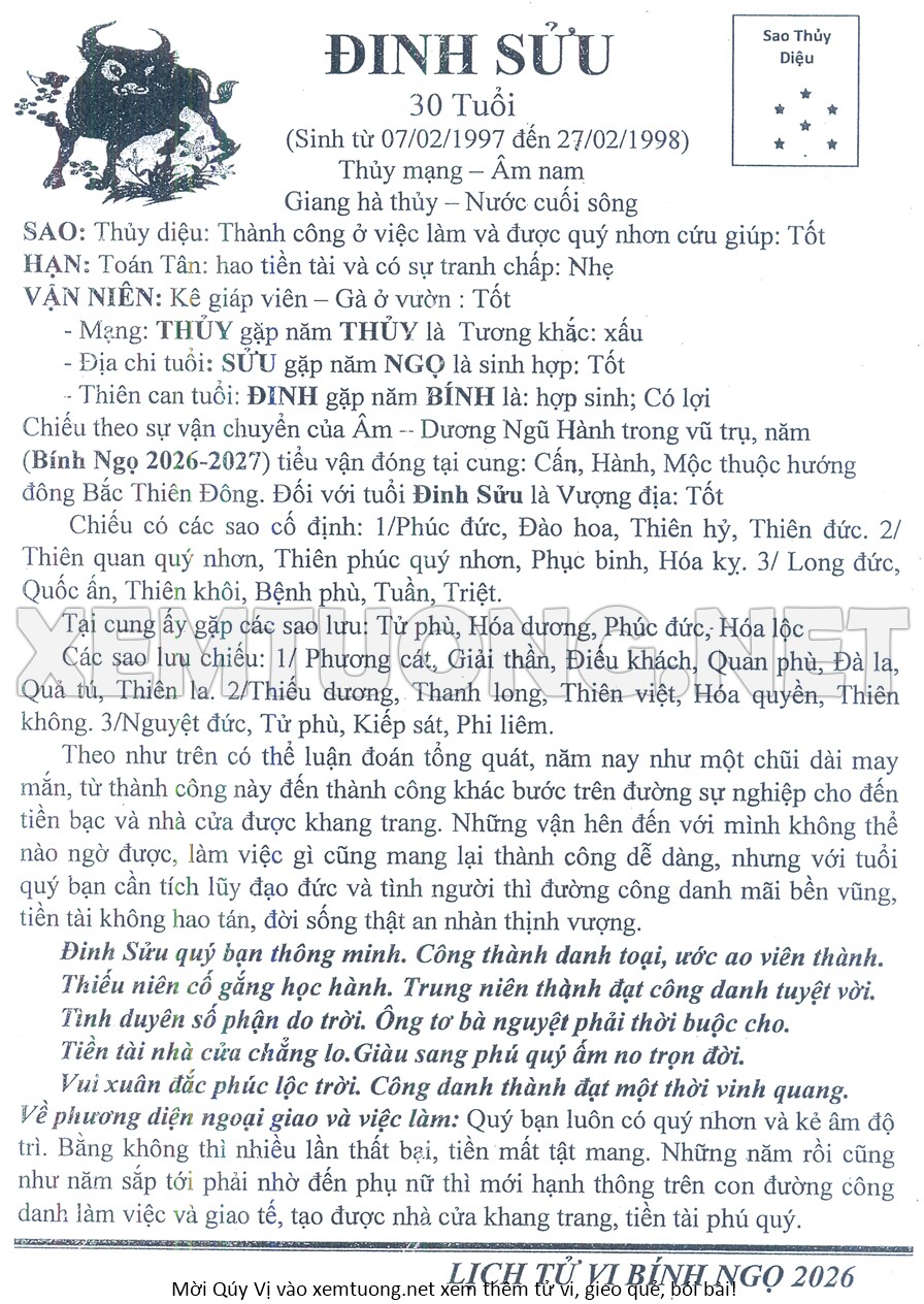 Tử Vi Năm Bính Ngọ 2026 mạng nam ĐINH SỬU