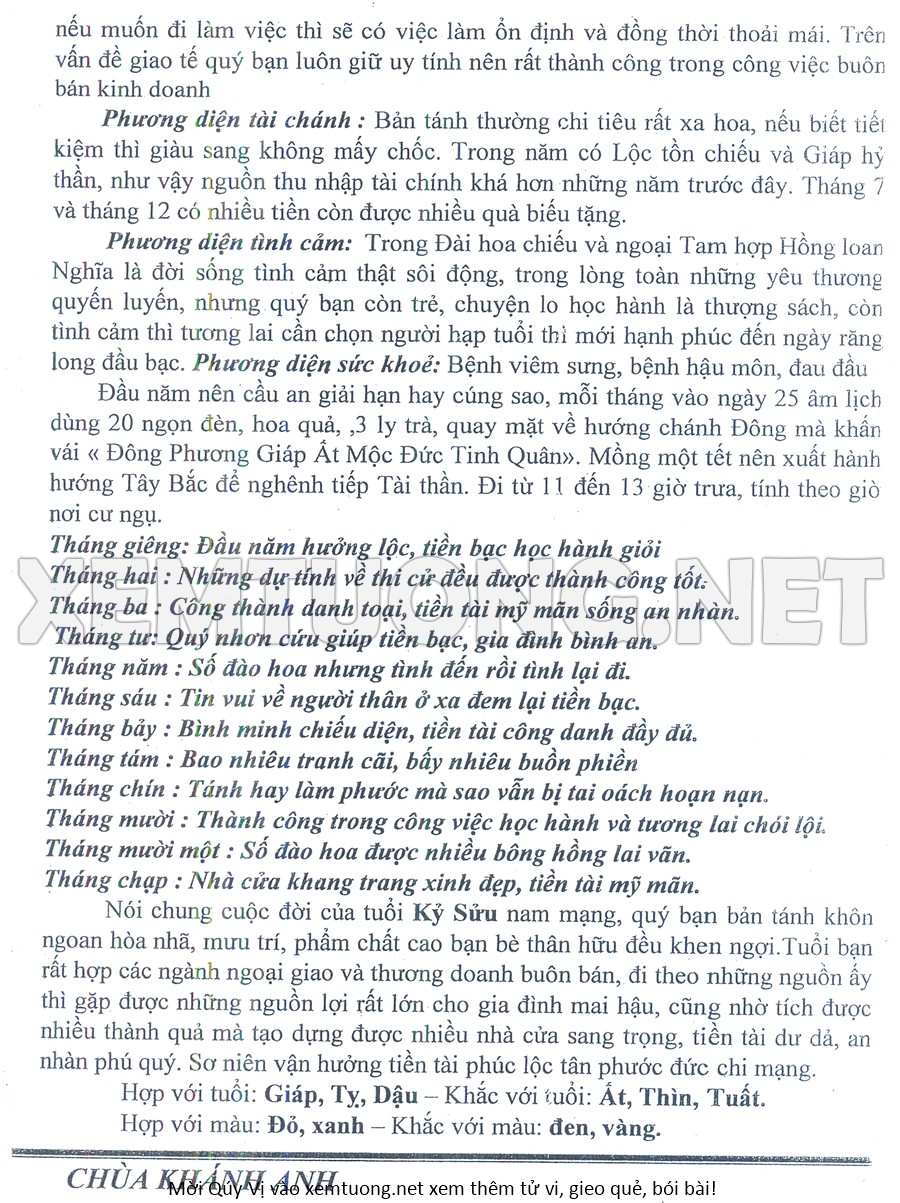 Tử Vi Năm Bính Ngọ 2026 mạng nam Kỷ Sửu