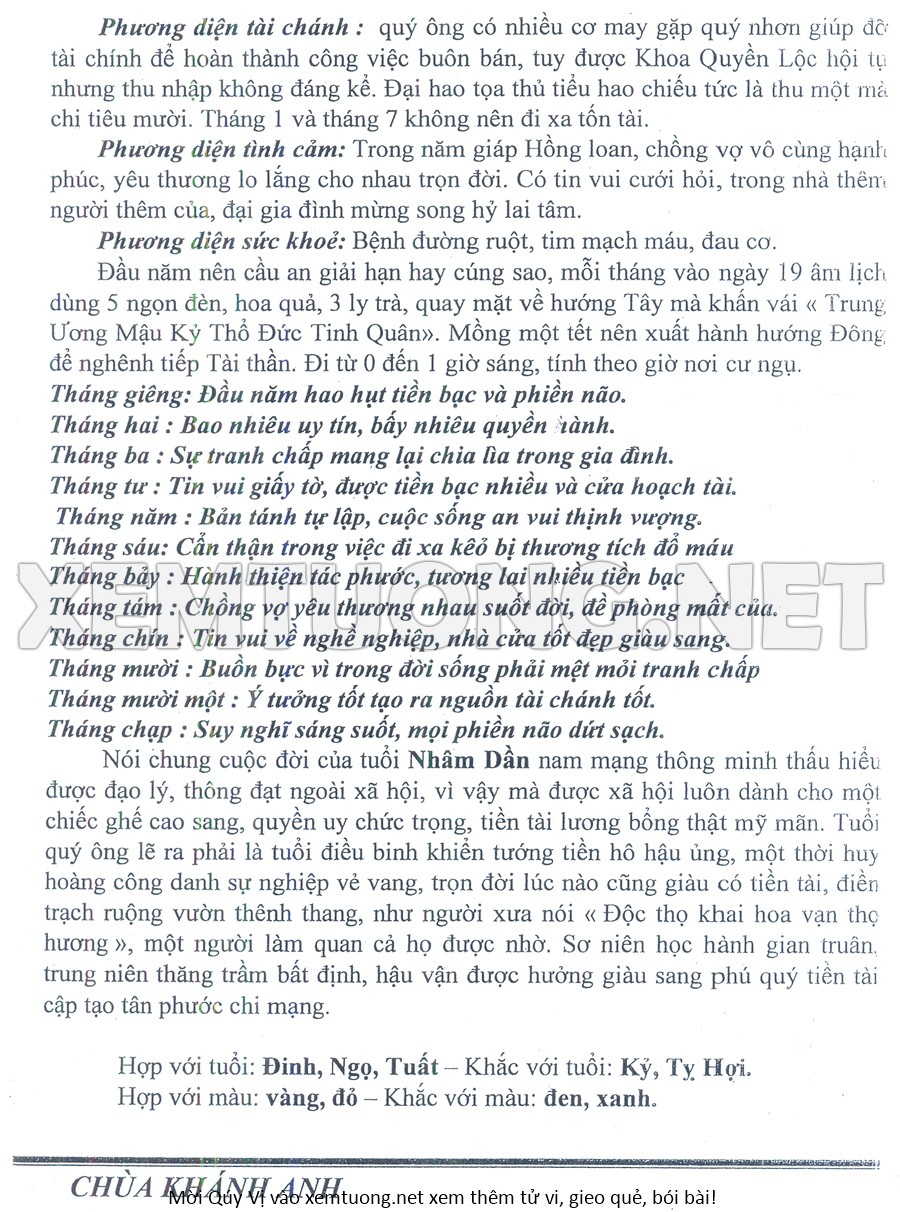Tử Vi Năm Bính Ngọ 2026 mạng nam NHÂM DẦN