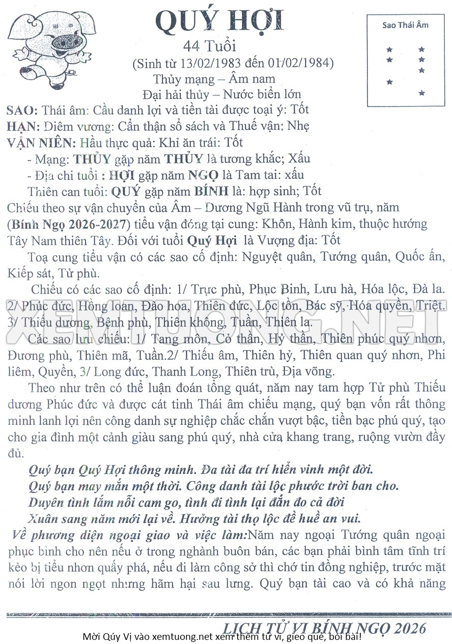 Tử Vi Năm Bính Ngọ 2026 mạng nam QUÝ HỢI