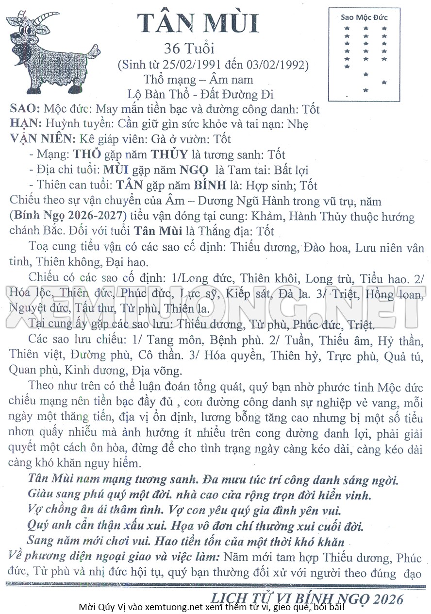 Tử Vi Năm Bính Ngọ 2026 mạng nam TÂN MÙI