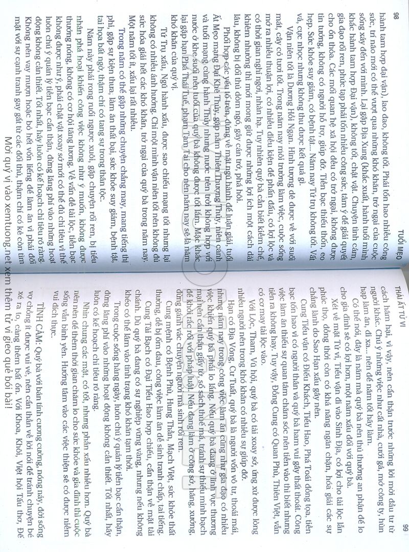 (Lưu ý: Thái Ất Tử Vi được chúng tôi scan từ sách, do đó mỗi tuổi sẽ có nhiều trang, quý vị xem xong hãy nhấn vào trang tiếp theo để xem hết phần tuổi muốn xem. Nếu quý vị xem bằng điện thoại thì hãy kéo qua lại để xem phần bị khuất.)