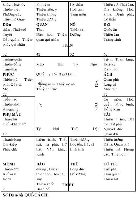 Cung phúc-đức: TANG , HỔ , KÌNH, ĐÀ , KHỐC ,HƯ, KHÔNG, KIẾP.