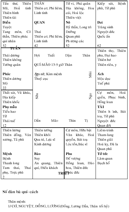 3) Mệnh, thân: CƠ, NGUYỆT, ĐỒNG, LƯƠNG hội ĐÀO, HỒNG, KHOA, QUYỀN, LỘC,