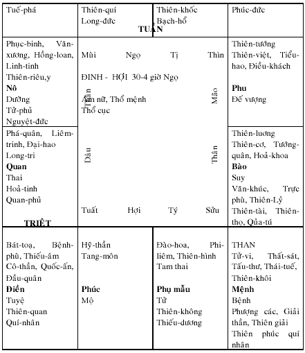 Năm Mão(29 tuổi) hạn LỘC, MÃ, TƯỚNG,ẤN phùng TRIỆT. Ngoài có XƯƠNG, KỴ,