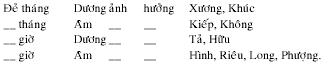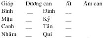 Còn năm, tháng cũng cần xem Ngũ hành và hàng Can (coi ở bản đồ