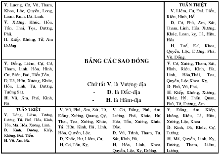 Những sao ảnh hưởng về Ngày sinh, Tháng đẻ.